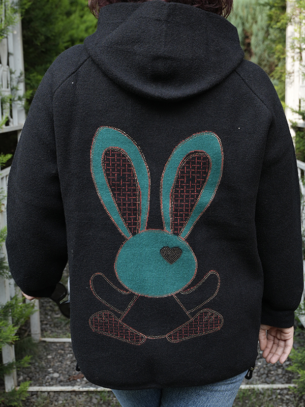 پالتو کتی کلاه دار زیپدار پشت طرح خرگوش